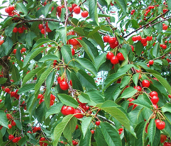 Montmorency tart cherries. 7-10 days 'til harvest.